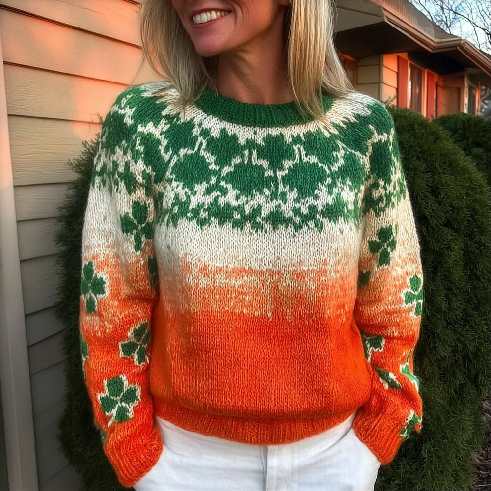 Casual St. Patrick's Day Shamrock Gradient Cozy Knit Sweater