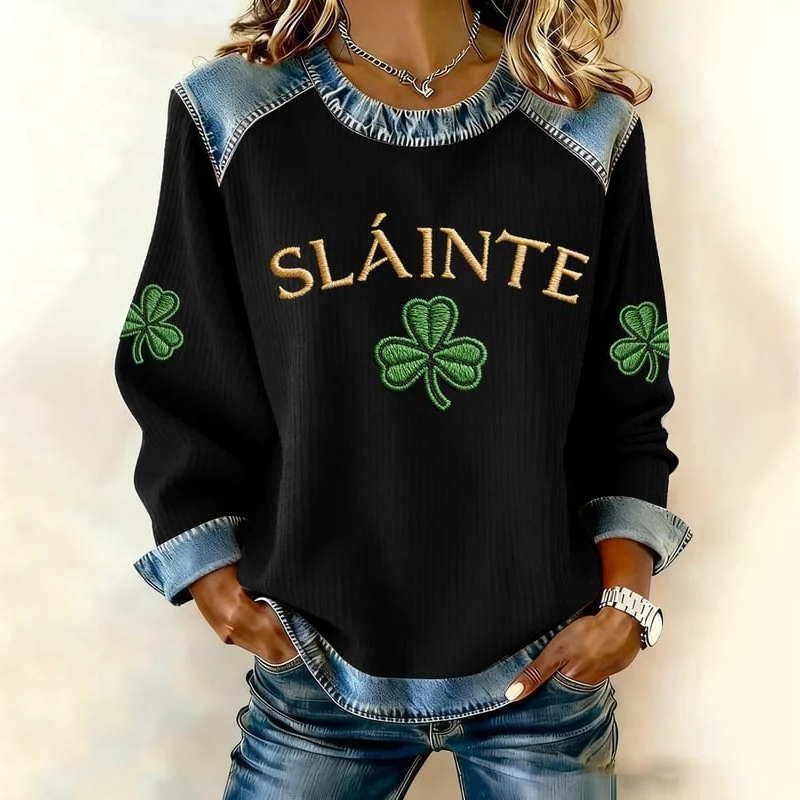 Women's St. Patrick's Day Clover Color Block Sweatshirt
