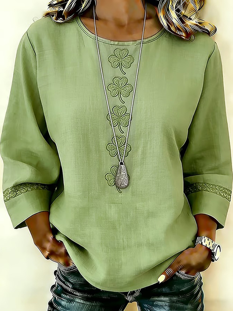 Women's St. Patrick's Day Printed Cotton And Linen Shirt